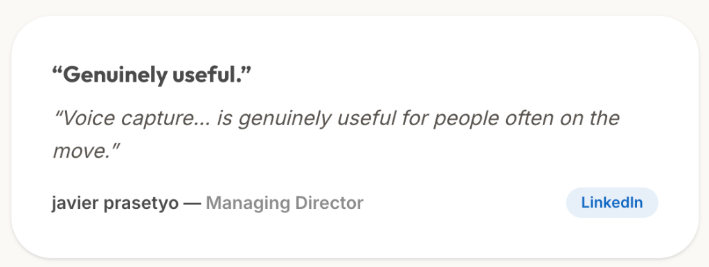 The problem? By the time you finish, the meeting has moved on or you've forgotten the context.